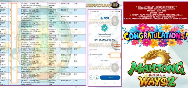 BINTANG4DP JACKPOT PGSOFT MAHJONG WAPS 2 Rp.21.000.000,- LUNAS
